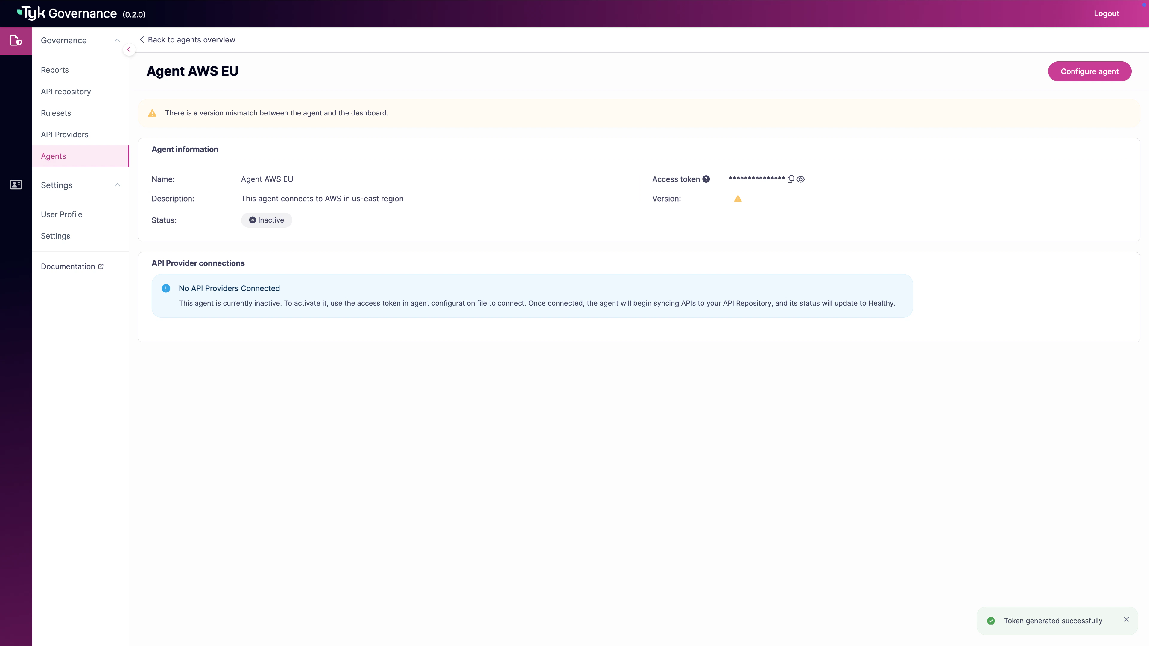 Now you can generate an access token for the agent.